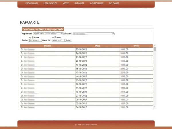 Raport de servicii. Vă arată numărul de servicii plătite din clinică.